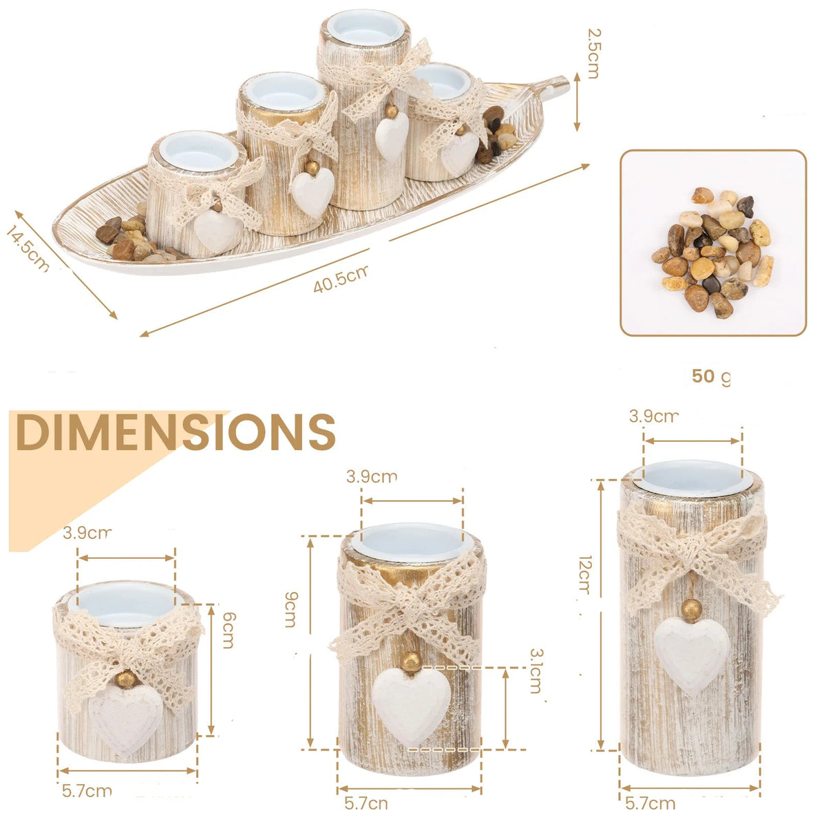 Fabriqué avec des matériaux robustes et bien travaillés, ce set assure stabilité et sécurité lors de l’utilisation des bougies.
