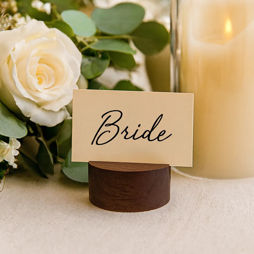 - Apportez une touche naturelle et élégante à vos tables avec ce porte-cartes de place rond en bois, alliant simplicité et raffinement pour chaque événement.
