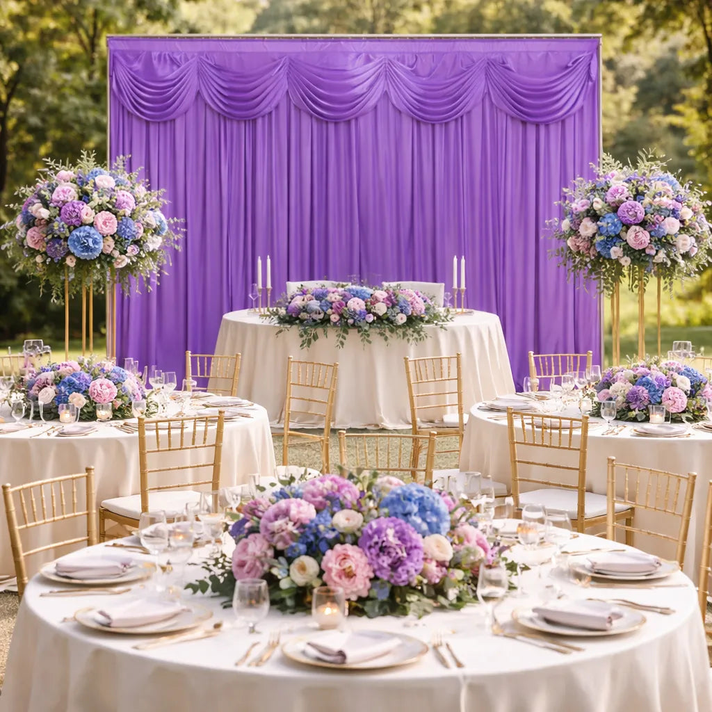 Transformez votre espace de réception avec notre collection de rideaux mariage, conçue pour habiller murs, arches ou fonds de scène avec élégance. Associez-les à notre décoration de salle mariage afin de créer une ambiance harmonieuse et immersive, parfaitement coordonnée avec le reste de votre mise en scène.