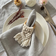Ce rond de serviette est méticuleusement fabriqué à la main, garantissant une qualité artisanale exceptionnelle. Le macramé, tissé avec soin, offre une texture douce et luxueuse, tandis que le cercle en bois ajoute une touche naturelle et élégante. Résistant et durable, il conserve son aspect soigné et ses finitions impeccables tout au long de votre événement. Il est le choix idéal pour un mariage bohème chic et inoubliable.