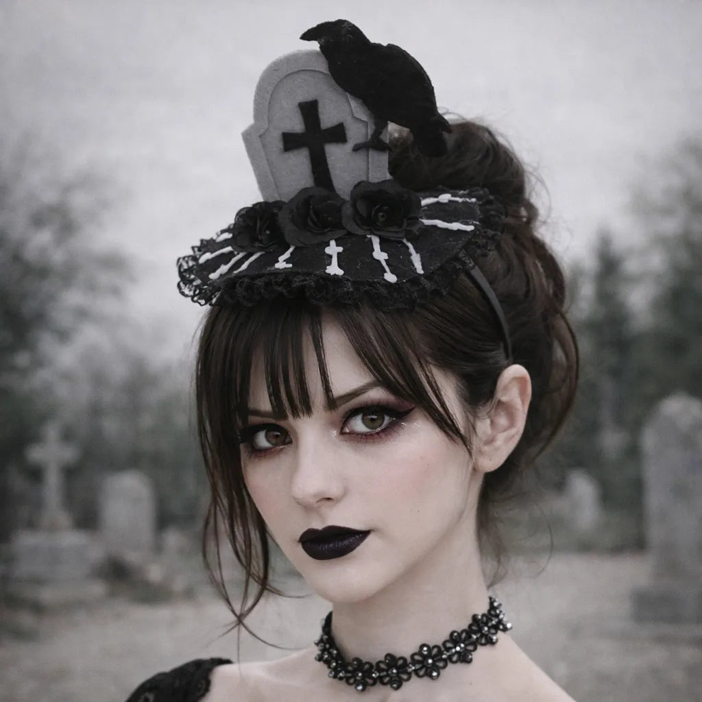 Ce serre-tête pierre tombale se distingue par son design sombre et créatif, mêlant une stèle grise, un corbeau noir et des fleurs élégantes. L’ensemble crée une ambiance macabre parfaitement adaptée à Halloween. Léger et confortable, il offre un équilibre visuel saisissant entre frisson et sophistication. Idéal pour compléter un déguisement effrayant ou original, il attire instantanément l’attention et devient la pièce maîtresse de votre tenue.