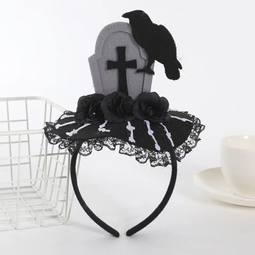 - Design du serre-tête : Pierre Tombale, Corbeau et Fleurs noires