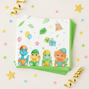 Avec leurs illustrations de bébés dinosaures aux couleurs joyeuses (vert, bleu, orange), ces serviettes créent une ambiance festive et ludique. Elles sont parfaites pour une décoration d’anniversaire pleine de tendresse, d’imaginaire et de bonne humeur, qui ravira les enfants et émerveillera les invités.