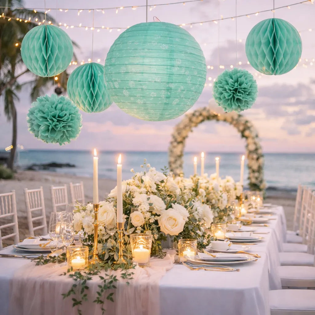 Ces lampions en papier sont parfaits pour structurer une décoration aérienne et élégante lors de vos célébrations. Leur structure légère permet de les suspendre facilement au plafond, sur une arche ou au-dessus d’une table de réception. Les différentes tailles créent un jeu de volumes décoratifs qui apporte de la profondeur à l’espace. Utilisés ensemble, ils composent une ambiance festive équilibrée qui s’intègre parfaitement aux mariages, anniversaires et fêtes saisonnières.