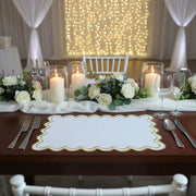 Set de Table Blanc Brodé Doré - 6 Pièces