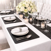 Adoptez ce set de table en cuir artificiel pour créer une ambiance soignée et contemporaine dès le premier regard. Ce modèle se distingue par une surface élégante qui imite l’aspect du cuir avec précision, apportant du caractère à la table sans excès. Les lignes sont nettes et les contours bien définis, ce qui structure visuellement l’espace repas. Il offre un rendu équilibré et moderne, idéal pour accompagner différents styles de vaisselle tout en conservant une présentation propre et harmonieuse au quotidien.