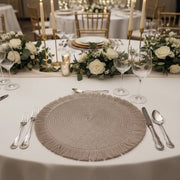 Le set de table rond gris chic allie simplicité et raffinement pour apporter une touche moderne à toute table. Son design circulaire, agrémenté de franges délicates, s’intègre parfaitement dans divers styles de décoration. Que ce soit pour une soirée spéciale ou un usage quotidien, il transforme instantanément l’ambiance de votre table, en lui donnant un aspect à la fois élégant et contemporain. Son gris subtil s'adapte à toutes les couleurs et crée une atmosphère apaisante.
