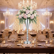 Ce vase centre de table mariage argenté apporte une touche lumineuse qui rehausse instantanément la décoration. Son design élégant capte la lumière et crée un jeu de reflets subtils, idéal pour une ambiance chic et soignée. Il s’intègre naturellement à une décoration moderne comme plus classique, tout en mettant en valeur les compositions florales. Discret mais impactant, il devient un élément décoratif clé de la table.